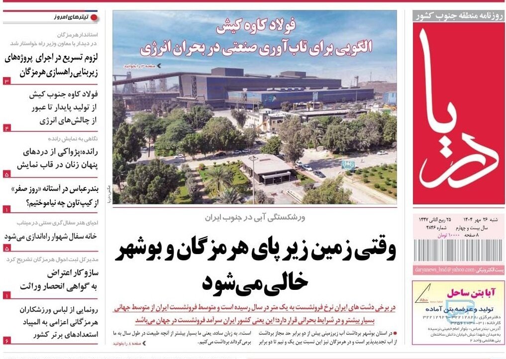 صفحه اول روزنامههای هرمزگان شنبه ۲۶ مهر