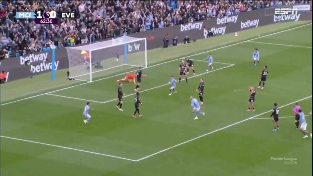 گل دوم منچسترسیتی به اورتون توسط هالند زده شد.