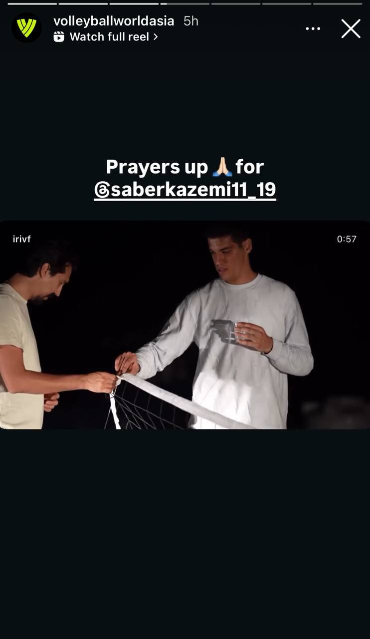 صفحه آسیایی فدراسیون جهانی با استوری‌ای از هواداران خواست برای صابر کاظمی دعا کنند.