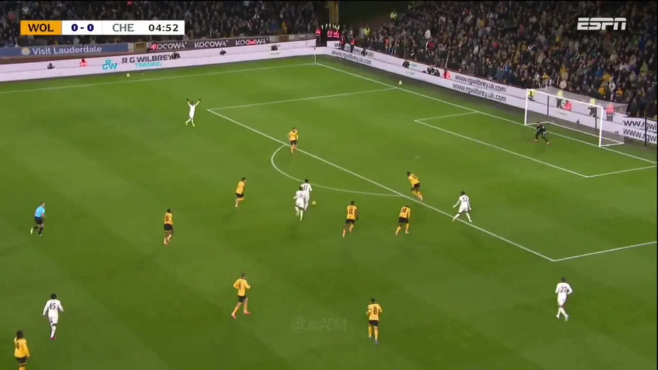 گل اول چلسی به ولورهمپتون توسط سانتوس زده شد.