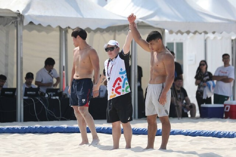 سینا شکوهی نماینده وزن ۷۰ کیلوگرم کشتی ساحلی، در مرحله فینال برابر ناکنات تانپور از هند پیروز شد و به مدال طلا رسید.