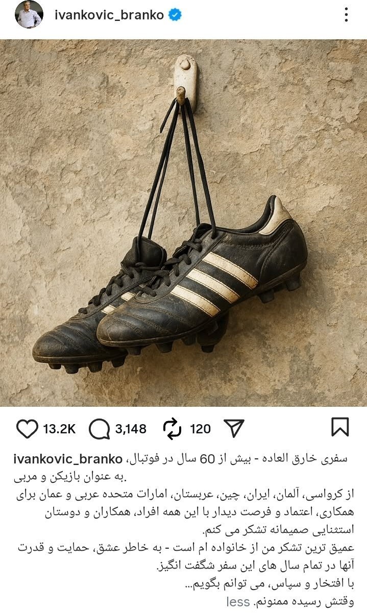 خداحافظی پر احساس برانکو از فوتبال + عکس