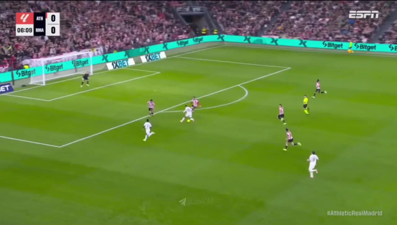 گل اول رئال مادرید به بیلبائو توسط امباپه زده شد.