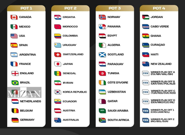 سیدبندی قرعهکشی جام جهانی به شرح زیر است: