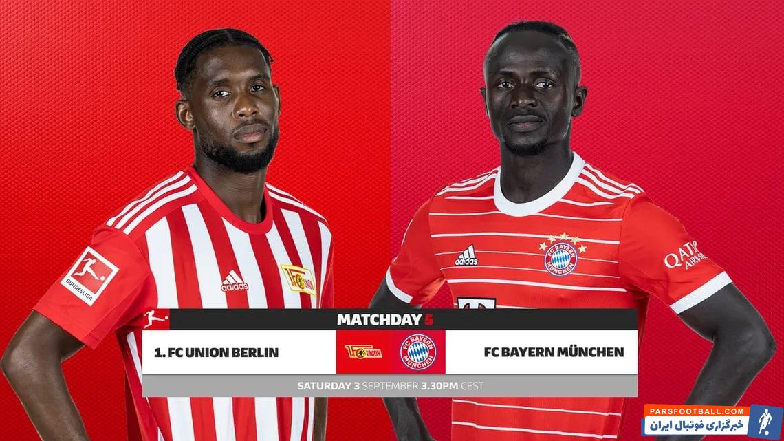 در چارچوب هفته پنجم بوندسلیگا، اونیون برلین میزبان بایرن مونیخ است. اطلاعات بازی اونیون برلین – بایرن مونیخ تاریخ برگزاری: شنبه، ۱۲ شهریور ۱۴۰۱ (۳ سپتامبر ۲۰۲۲) ساعت برگزاری: ۱۸:۰۰ به وقت تهران مکان برگزاری: استادیوم آنده آلتن فورشترای؛ برلین هفته برگزاری: هفته پنجم بوندسلیگا، فصل ۲۳-۲۰۲۲ ترکیب اولیه تیمهای اونیون برلین و بایرن مونیخ