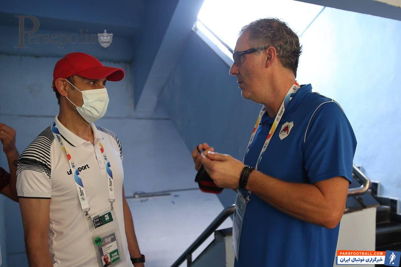 در این هنگام سرمربیان پرسپولیس و الریان باهم برخورد صمیمانه‌ای داشتند و برای دقایقی هم صحبت شدند. بلان سه روز پیش دیدار پرسپولیس و الوحده را از نزدیک تماشا کرده بود.