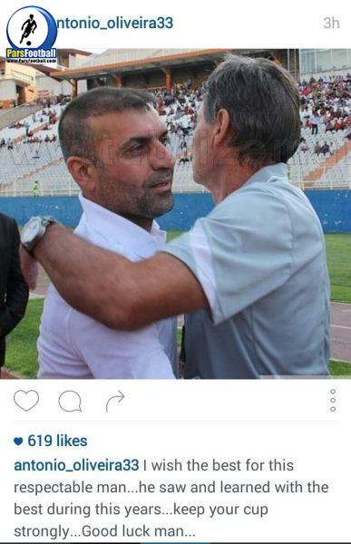آنتونیو اولیویرا فرزند و دستیار سرمربی سابق تراکتورسازی با انتشار عکسی از پدرش و عبدالله ویسی ابراز امیدواری کرد تا استقلال خوزستان قهرمان رقابت های لیگ برتر شود.