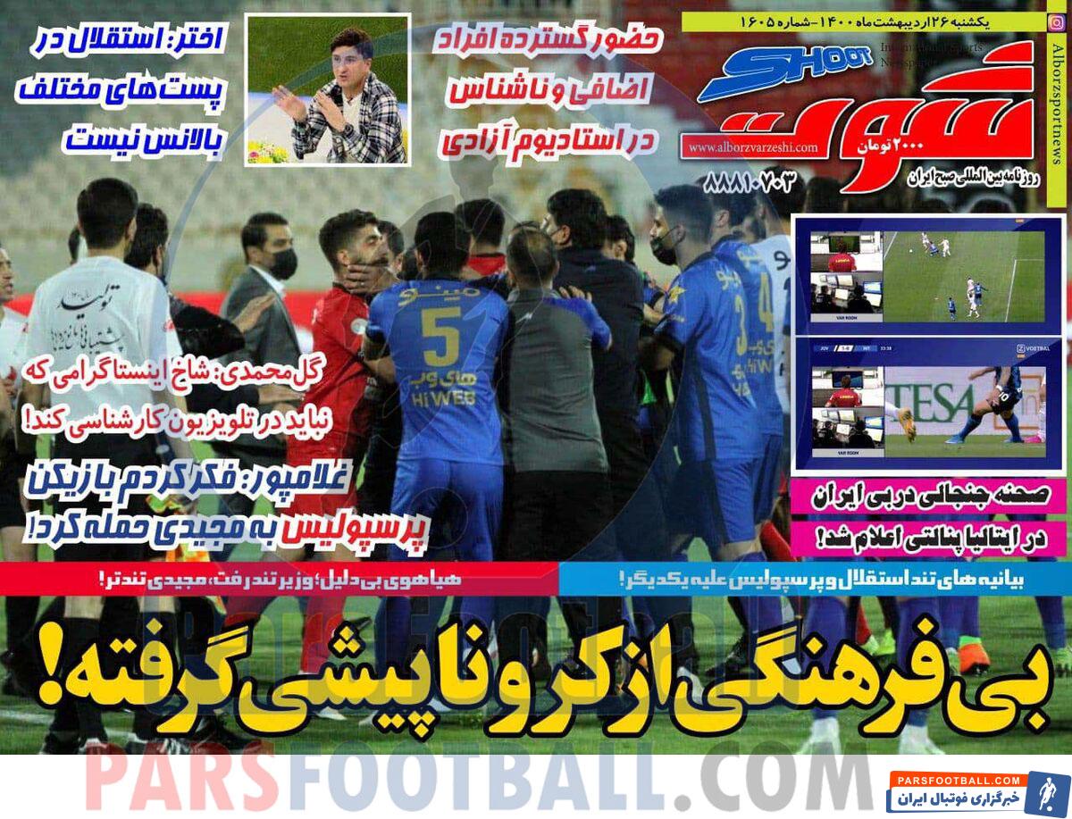 عناوین روزنامه شوت یکشنبه ۲۶ اردیبهشت ماه به شرح زیر است :