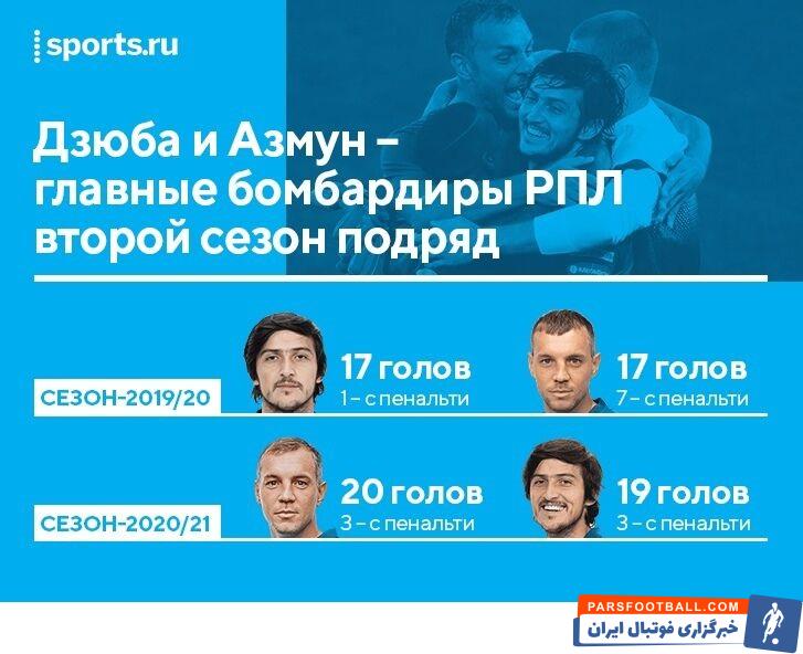 سردار آزمون جایزه آقای گلی لیگ برتر روسیه را از دست داد و زوبا همبازی اش در بازی روز گذشته مقابل تامبوف موفق به ثبت پوکر شد و یک پله بالاتر از آزمون با ۲۰ گل بهترین گلزن فصل لیگ روسیه شناخته شد.