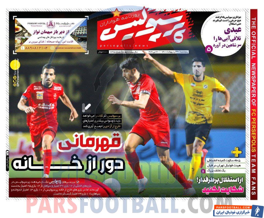 عناوین روزنامه پرسپولیس پنجشنبه ۳۰ اردیبهشت ماه به شرح زیر است :