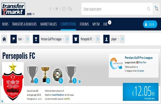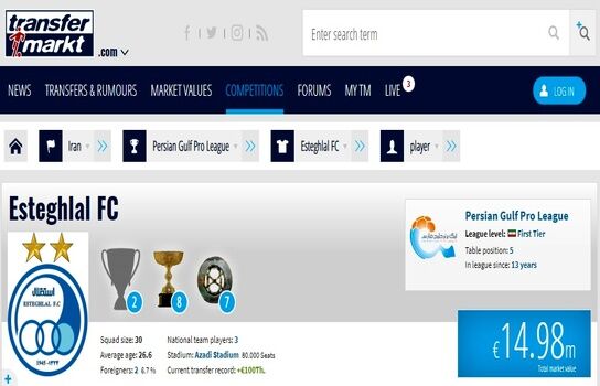از طرفی این درحالی است که ارزش استقلال در سایت ترانسفر مارکت نزدیک به ۱۵ میلیون دلار است و ارزش پرسپولیس ۱۲ میلیون دلار تخمین زده شده است.