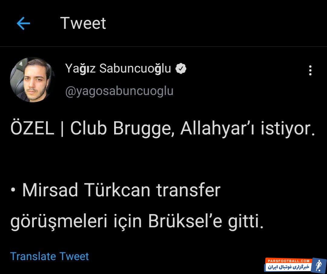 یاگیز سابونکو اوغلو روزنامه نگار ترک در توئیتر خود گفت که نماینده باشگاه فنرباغچه ترکیه که اللهیار صیادمنش تحت قرارداد این باشگاه است، یکی از مدیران تیم خود به نام میرساد ترکان برای مذاکره درباره مهاجم ایرانی خود به بلژیک فرستاده است.