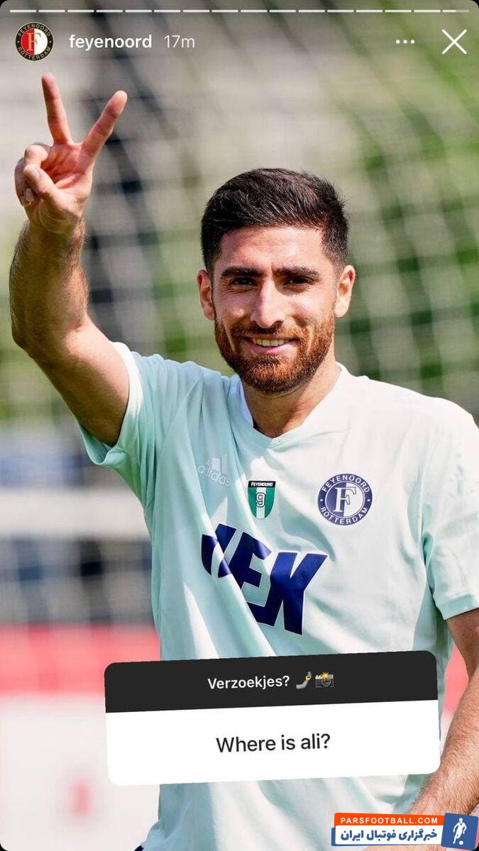 علیرضا جهانبخش پس از عقد قرارداد رسمی با فاینورد در تمرینات این تیم حاضر شد و باشگاه هلندی با انتشار یک استوری جذاب به این موضوع واکنش نشان داد و نوشت : ” علی کجاست؟”.