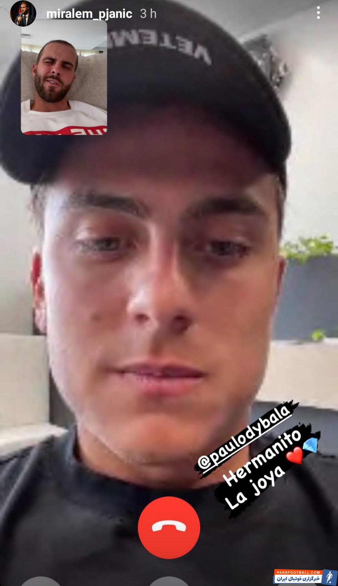 میرالم پیانیچ، هافبک ناکام بارسلونا، در یک استوری اینستاگرامی عکسی از تماس تصویری اش با ستاره یوونتوس یعنی پائولو دیبالا را به اشتراک گذاشت.