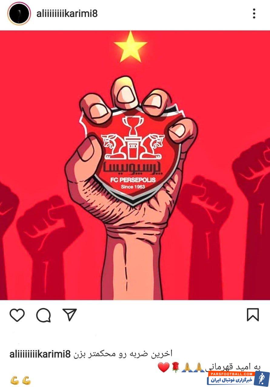 علی کریمی در آستانه این دیدار پست زیر را منتشر کرده است: