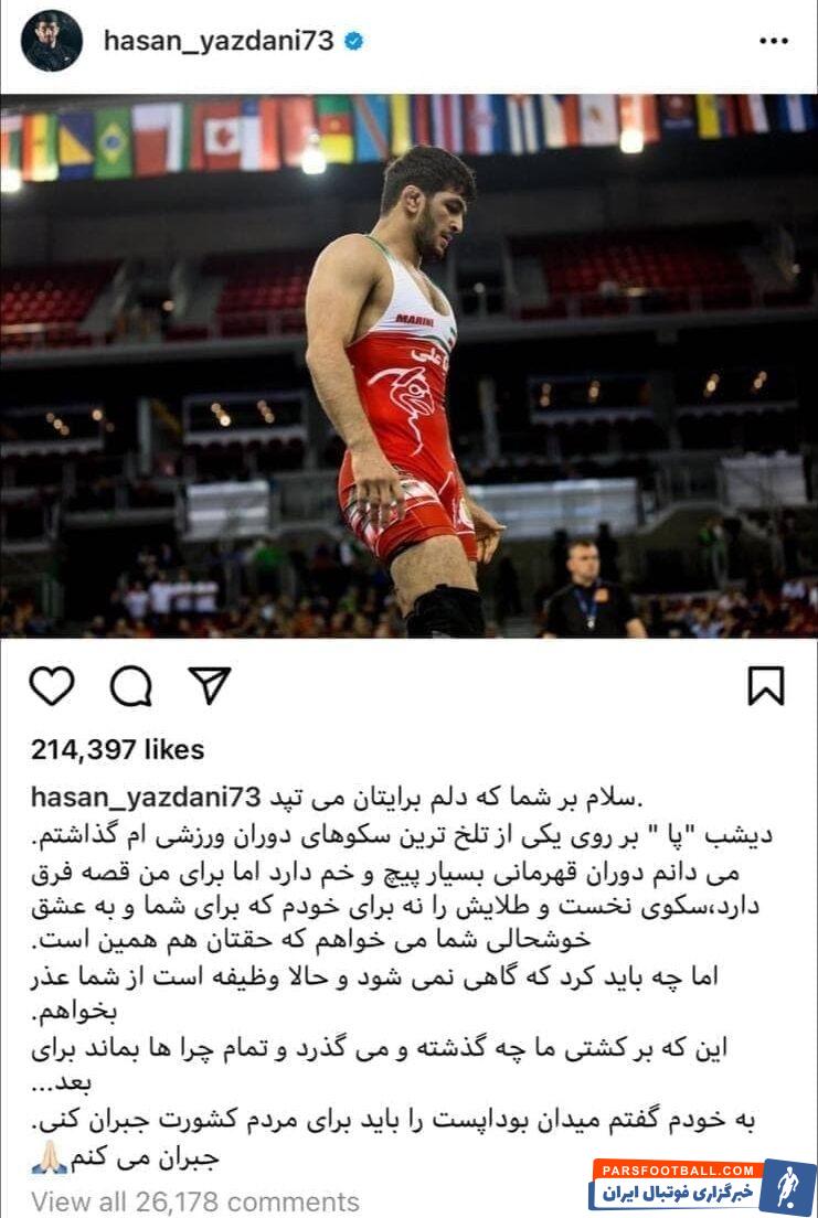 حسن یزدانی آزادکار وزن ۸۶ کیلوی کشورمان سال ۲۰۱۸ پس از شکست مقابل دیوید تیلور در بوداپست، وعده داده بود حریف آمریکایی را شکست خواهد داد.