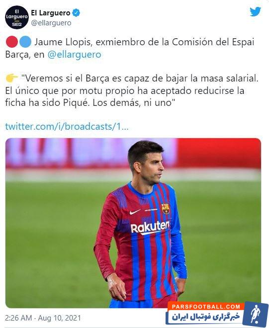 لوپیس به ال لارگوئرو گفت که جرارد پیکه تنها بازیکن بارسلونا بود که تصمیم گرفت در میان مشکلات مالی باشگاه، داوطلبانه دستمزد خود را کاهش دهد.