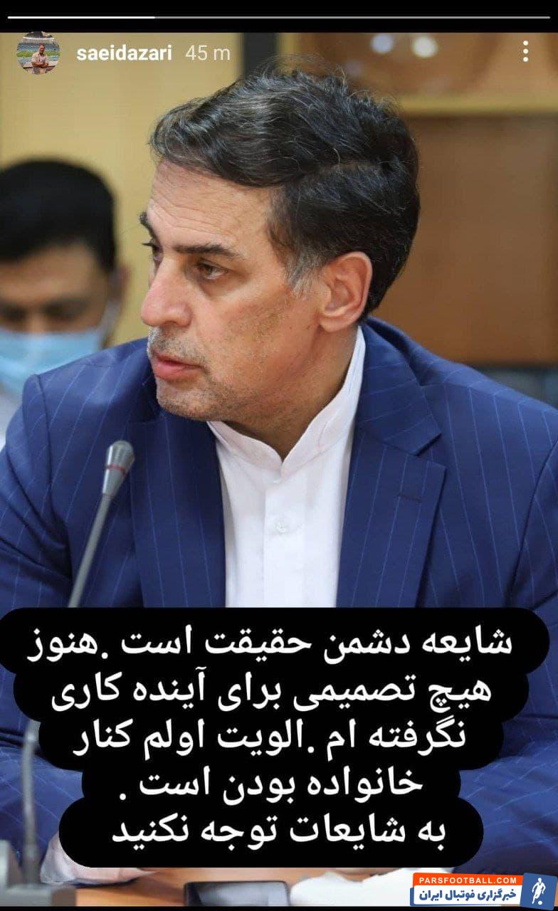 سعید آذری با انتشار استوریای در صفحه اینستاگرامش اعلامکرد هنوز تصمیمی برای آینده کاری خود نگرفته است.