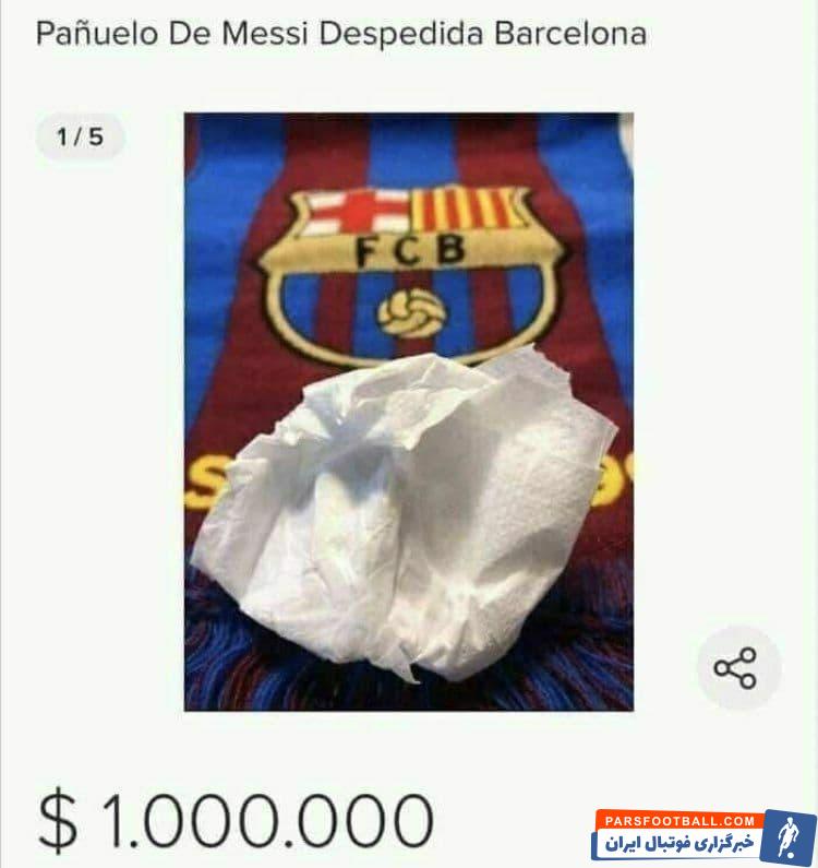 فروش اقلام متعلق به بازیکنان مشهور چیزی است که بارها توسط هواداران انجام شده است و در موارد فراوانی پیراهن های بازیکنان مشهور به منظور اهداف خیریه به فروش می رسد اما در اقدامی تازه و عجیب یکی از هواداران باشگاه بارسلونا، دستمالی را که لیونل مسی هنگام کنفرانس مطبوعاتی خود برای پاک کردن اشک هایش استفاده کرد را برای فروش گذاشته است!