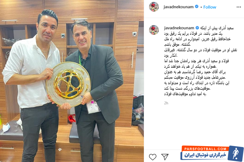 جواد نکونام در واکنش به جدایی سعید آذری، مدیرعامل فولاد خوزستان پستی در اینستاگرام خود منتشر کرد.