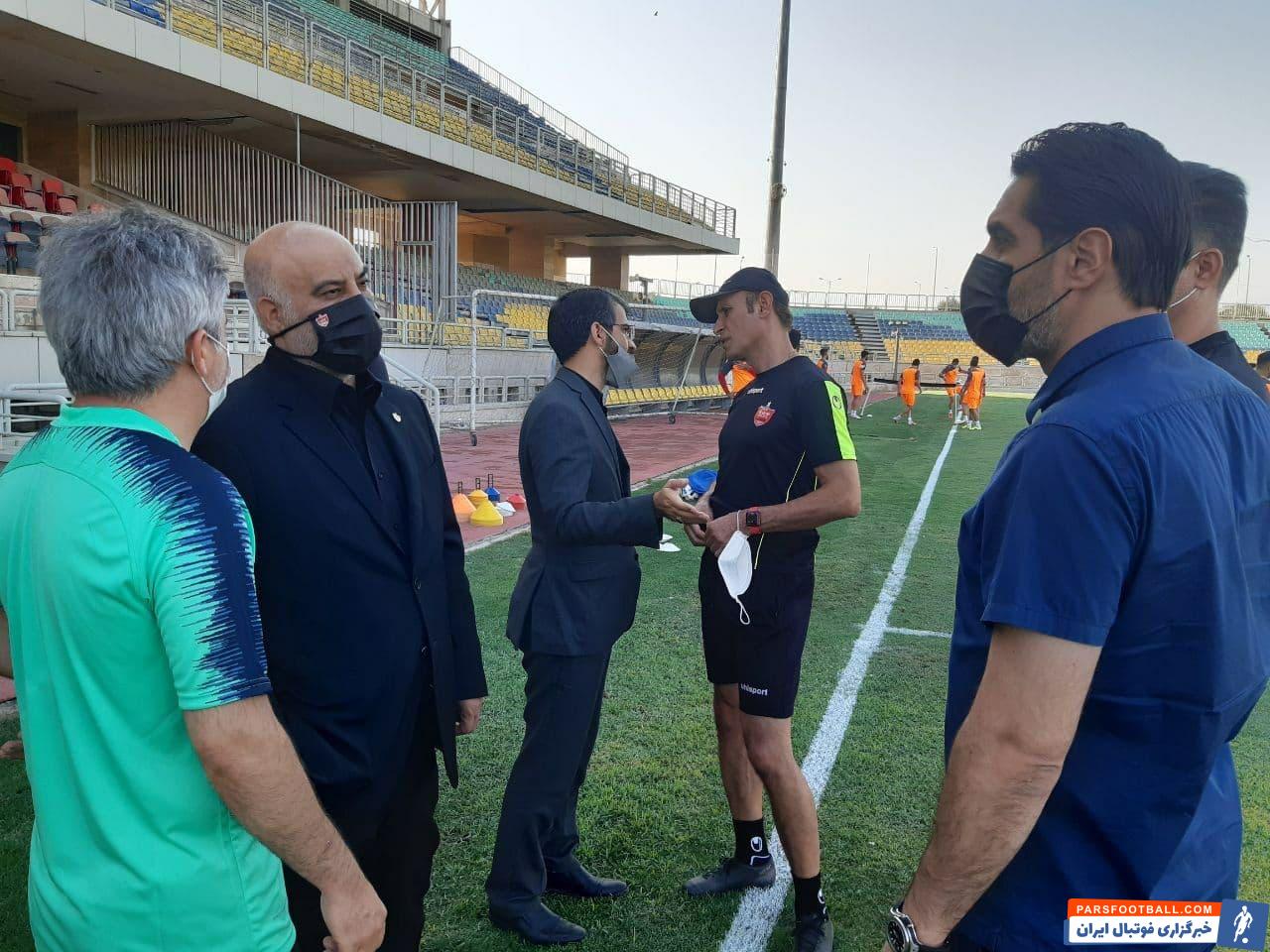 ملاقات نیمهخصوصی یحیی گل محمدی با مدیران پرسپولیس در حاشیه تمرین امروز