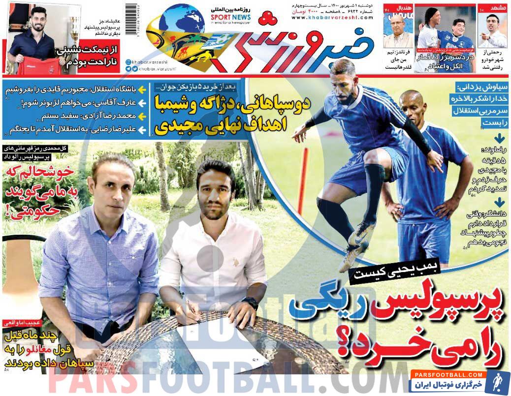 عناوین روزنامه خبر ورزشی دوشنبه ۱ شهریور ماه به شرح زیر است :