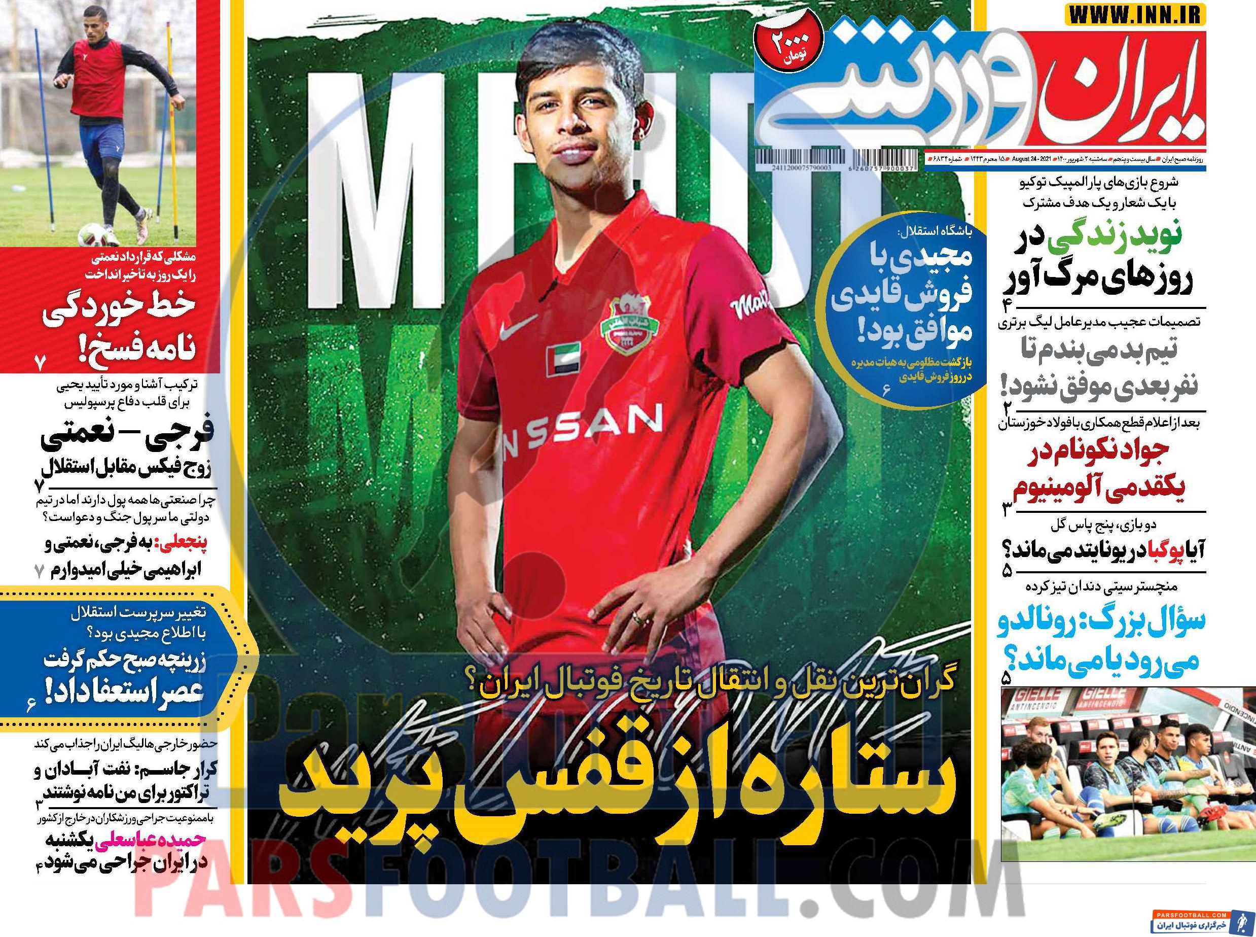 مرور عناوین مهم روزنامه ایران ورزشی سه شنبه 2 شهریور ماه 1400