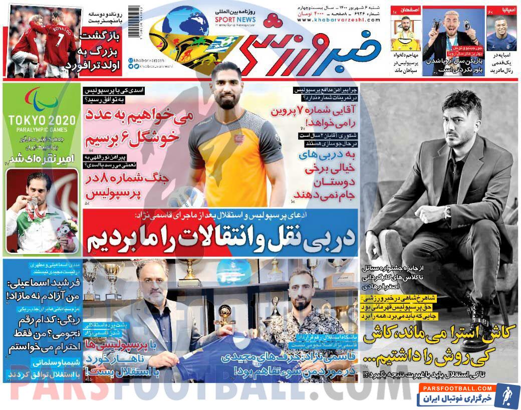 عناوین روزنامه خبر ورزشی شنبه ۶ شهریور ماه به شرح زیر است :
