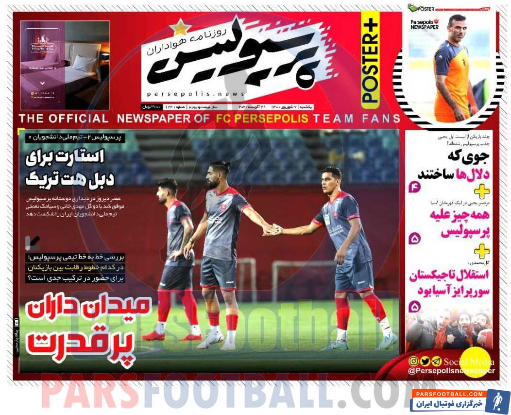 عناوین روزنامه پرسپولیس یکشنبه ۷ شهریور ماه به شرح زیر است :