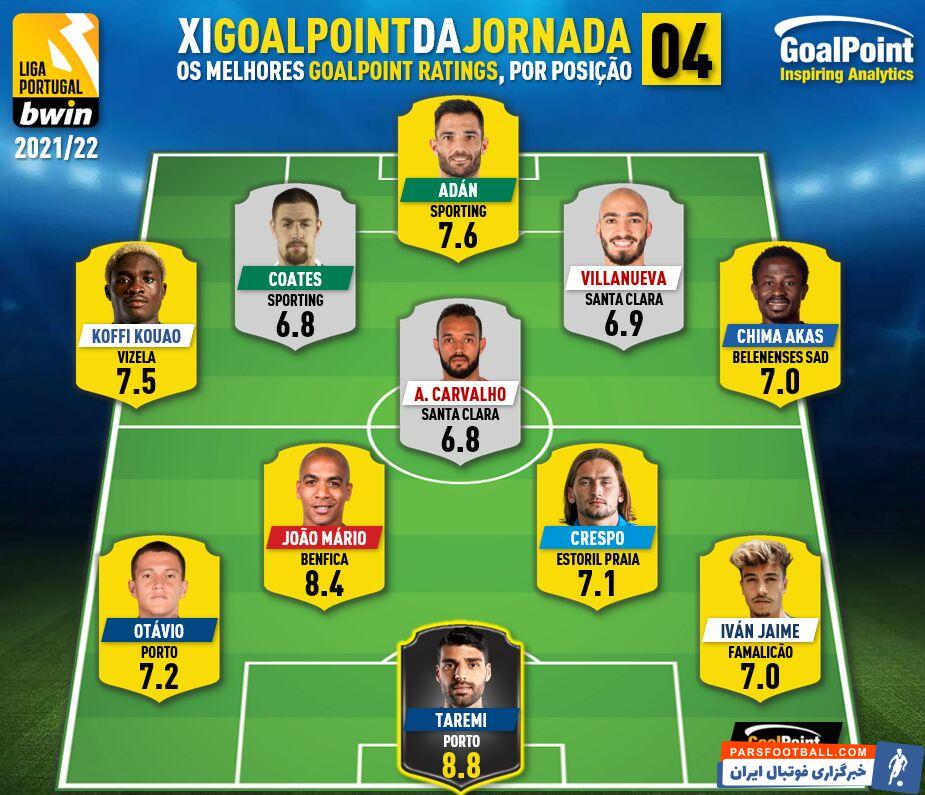 حالا با اتمام هفته چهارم لیگ پرتغال، سایت آماری «گلپوینت»، طارمی را به بهترین مهاجم هفته انتخاب کرده و با نمره بالای ۸.۸ در تیم منتخب او را قرار داده است.