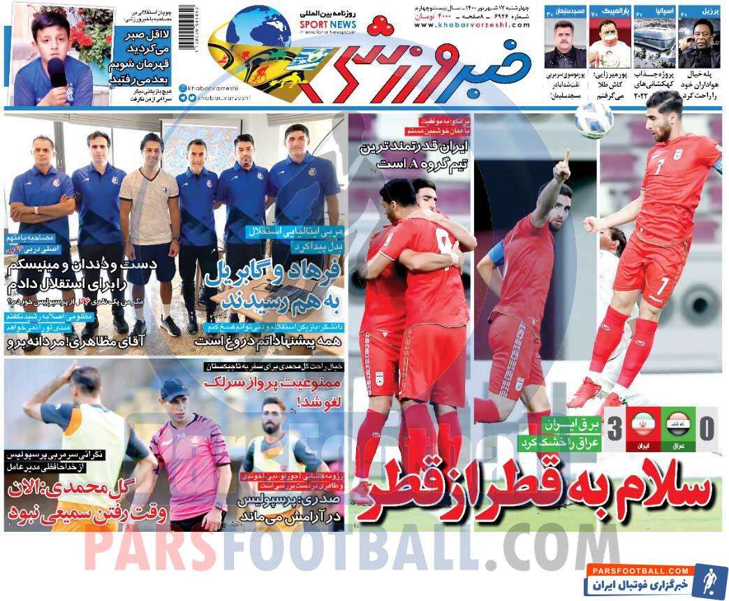 مرور عناوین مهم روزنامه خبر ورزشی چهارشنبه 17 شهریور ماه 1400
