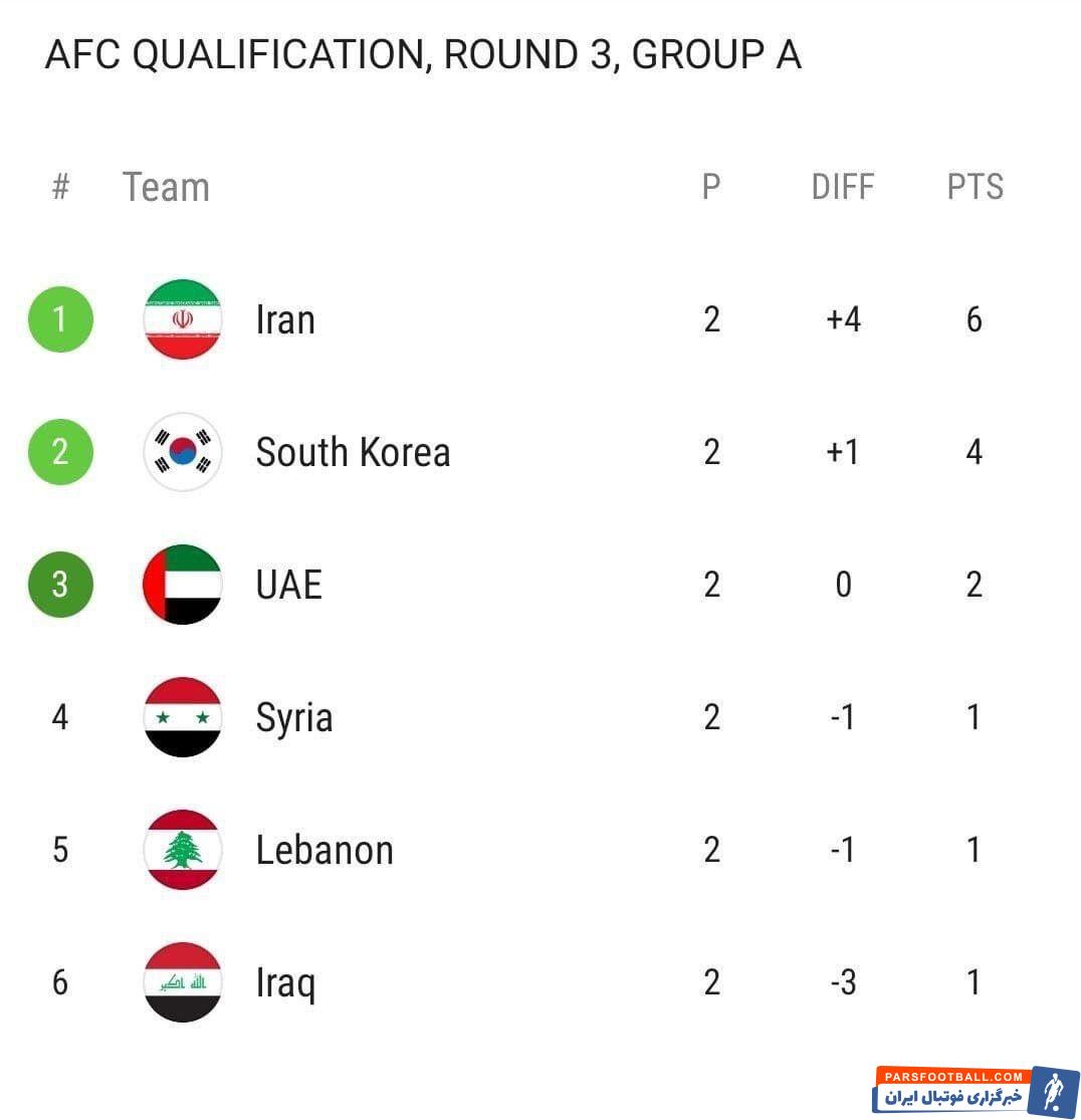 تیم ملی فوتبال ایران مقتدرانه در صدر جدول گروه A انتخابی جام جهانی