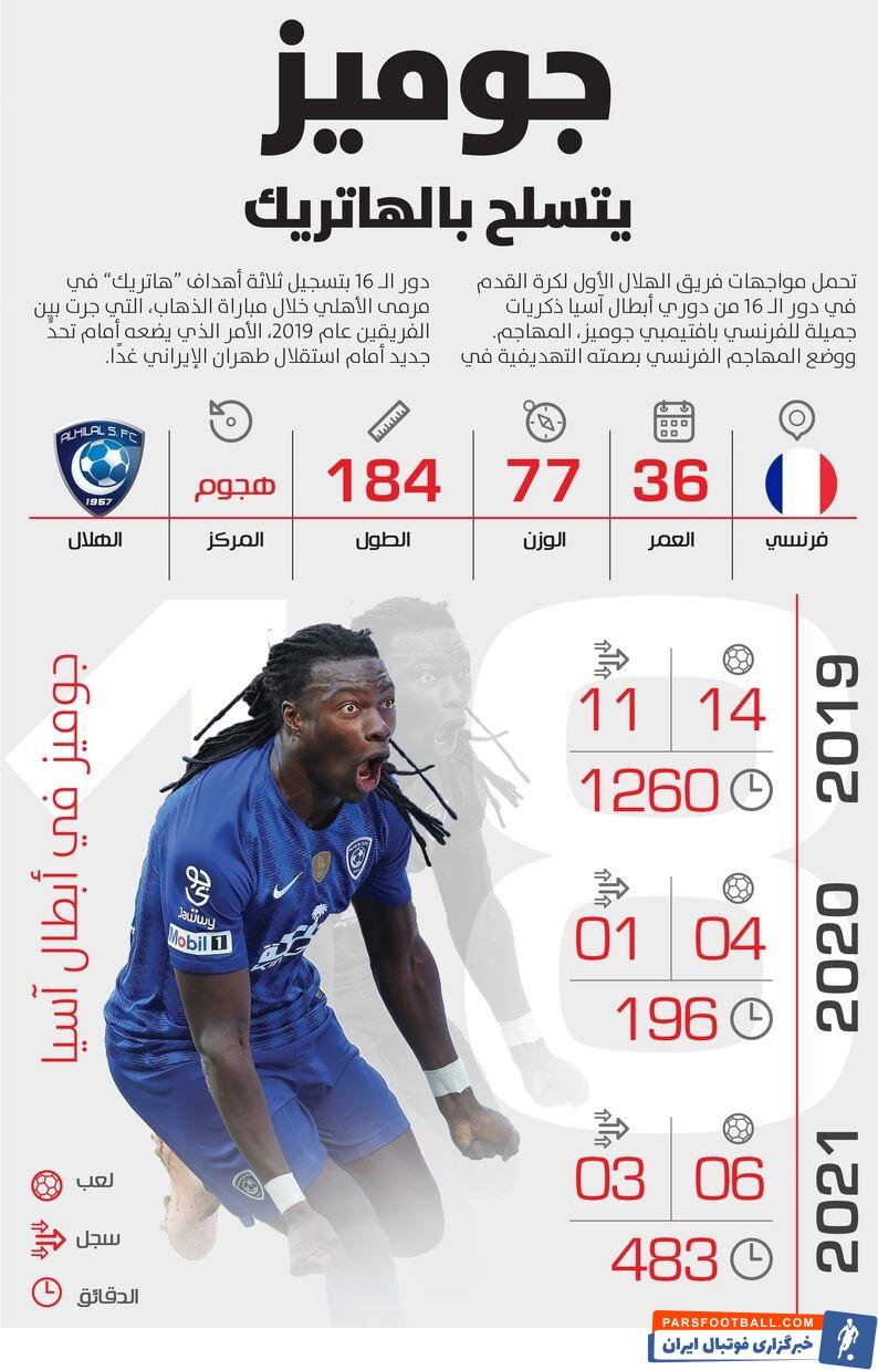 تیم فوتبال استقلال فردا(دوشنبه) از ساعت ۲۱:۳۰ در ورزشگاه زعبیل دبی در مرحله یک هشتم نهایی لیگ قهرمانان آسیا به مصاف الهلال می رود. نشریه «الریاضیه» عربستان به بررسی آمار گومیس مهاجم فرانسوی الهلال در لیگ قهرمانان آسیا در ۳ سال گذشته پرداخت.