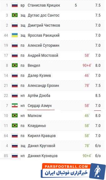 سردار آزمون نمره فنی خوبی در هفته هفتم لیگ برتر روسیه دریافت کرد.