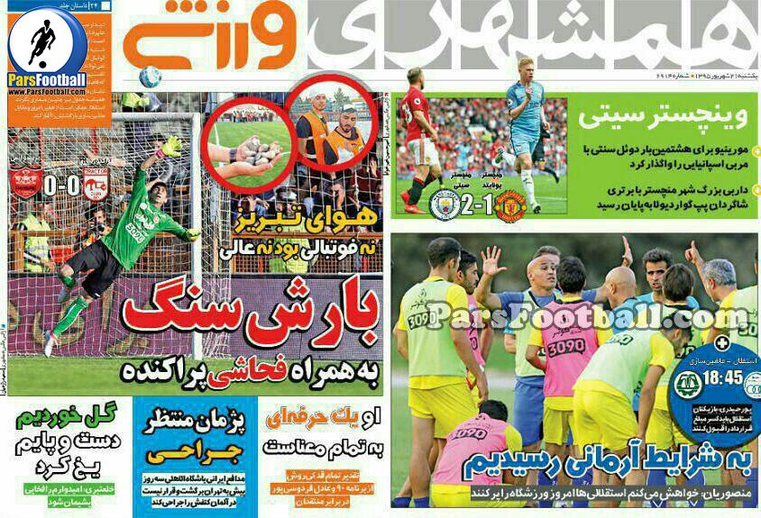 روزنامه همشهری ورزشی یکشنبه ۲۱ شهریور ۹۵ | هوای تبریز نه فوتبالی بود نه عالی | بارش سنگ به همراه فحاشی پراکنده