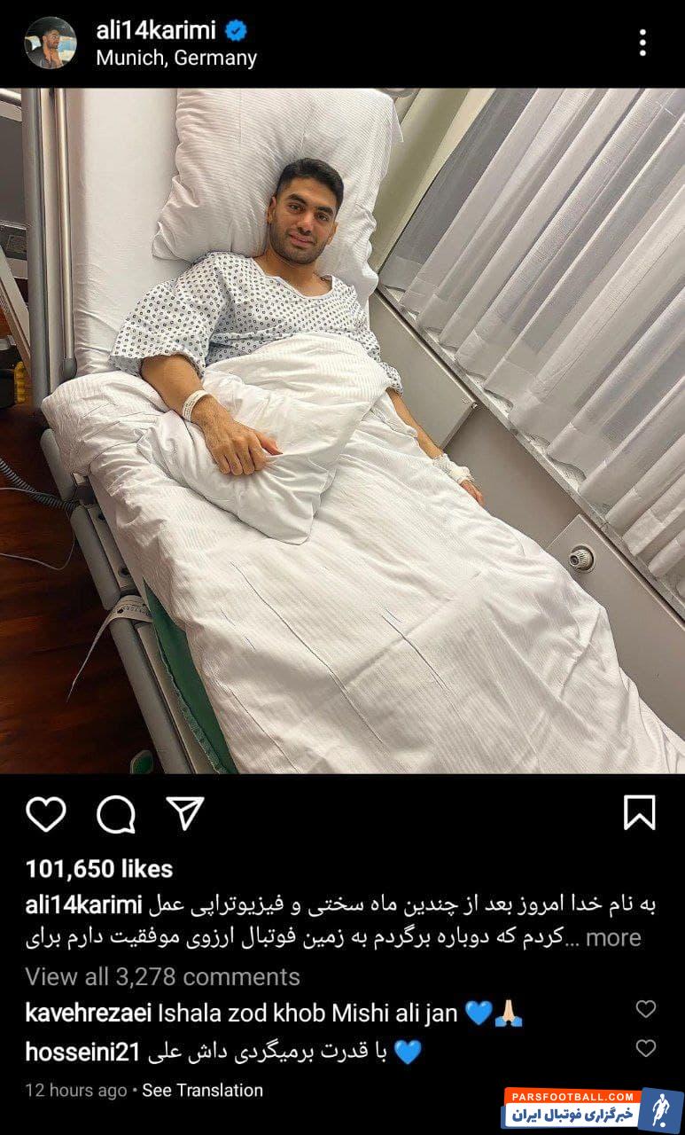 علی کریمی که در تمرینات کایسری اسپور ترکیه دچار مصدومیت شد، به تازگی پای خود را در آلمان به تیغ جراحان سپرده است.