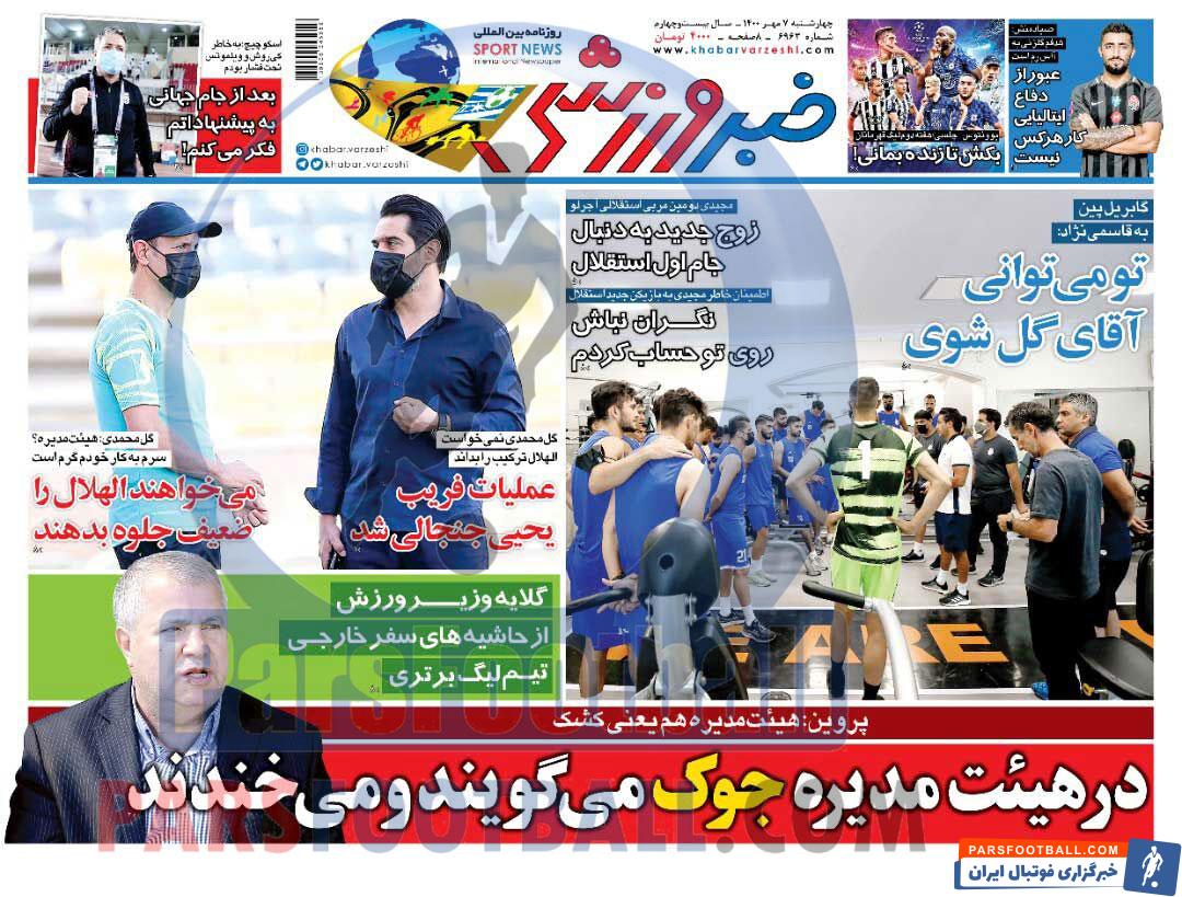 عناوین روزنامه خبر ورزشی چهار شنبه ۷ مهر ماه به شرح زیر است :