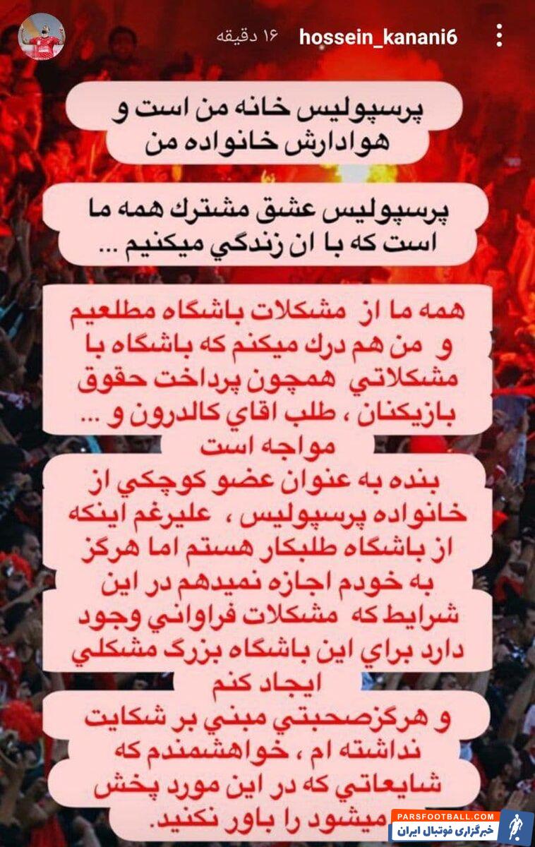 محمدحسین کنعانی زادگان مدافع لژیونر فوتبال ایران با انتشار یک استوری در اینستاگرامش خبر پیگیری طلبش از باشگاه پرسپولیس را تکذیب کرده است.