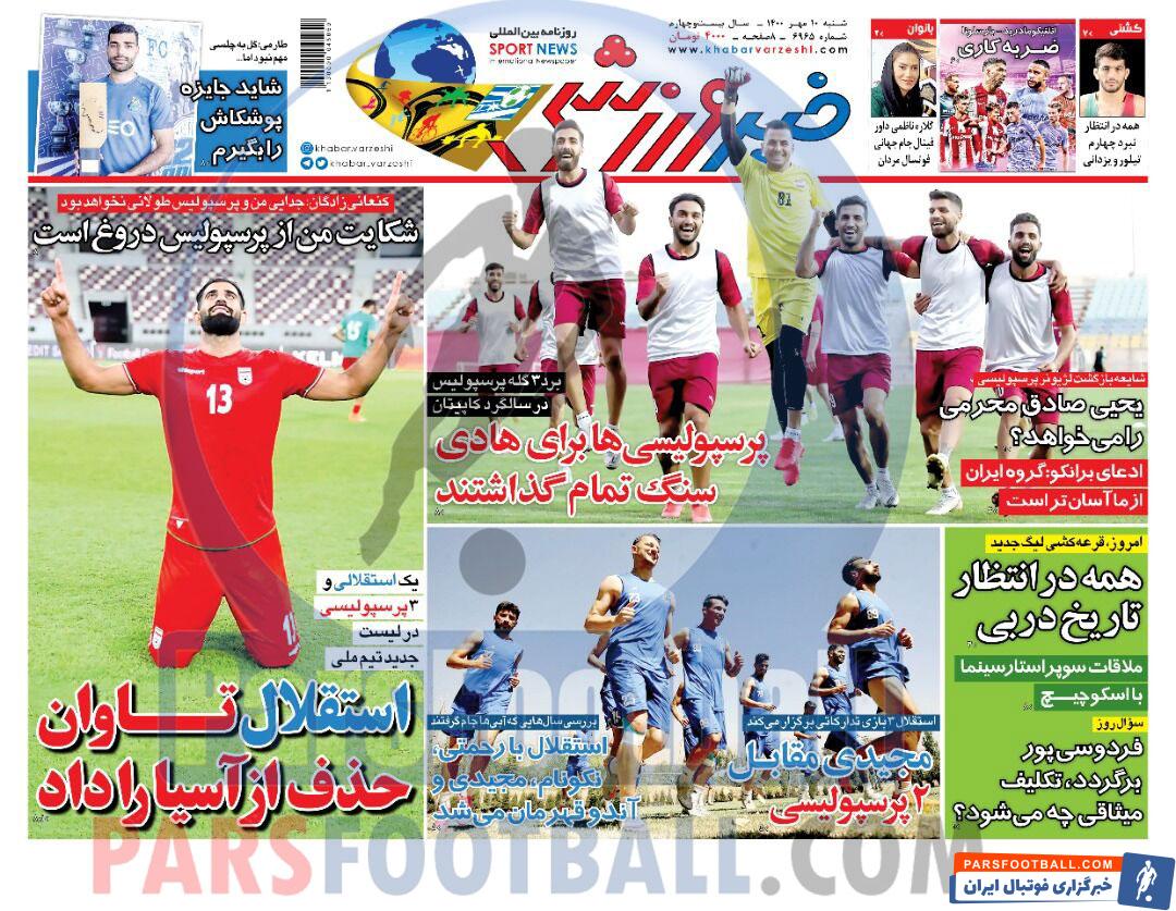 عناوین روزنامه خبر ورزشی شنبه ۱۰ مهر ماه به شرح زیر است :