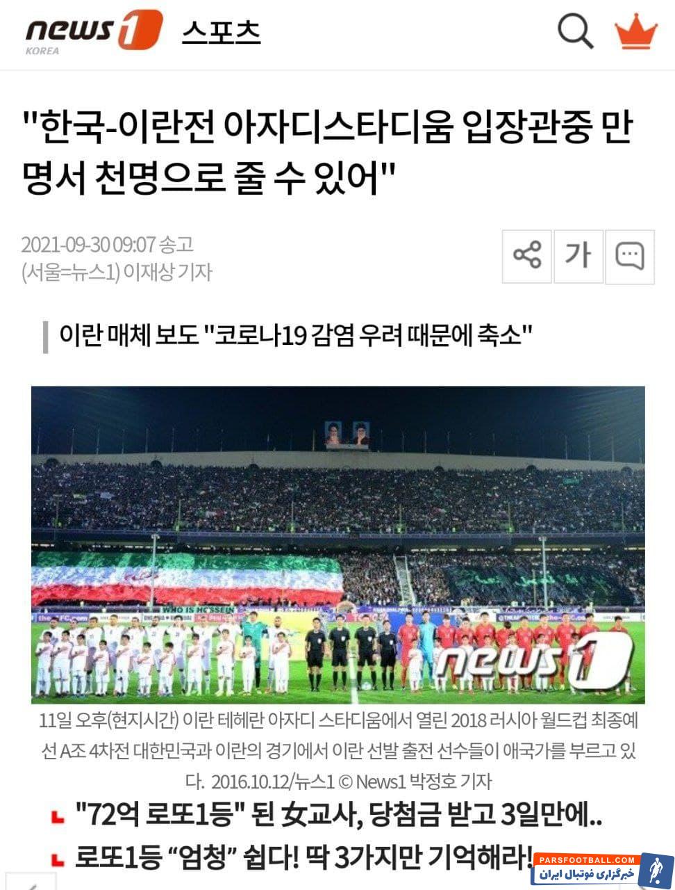 رسانه کره ای news1 : چنانچه تعداد تماشاگران بازی ایران و کره جنوبی از 10 هزار نفر به 1000 نفر کاهش یابد ، انتظار می رود بازیکنان تیم ملی که به میدان می روند ، بتوانند در محیط بهتری به مصاف ایران بروند