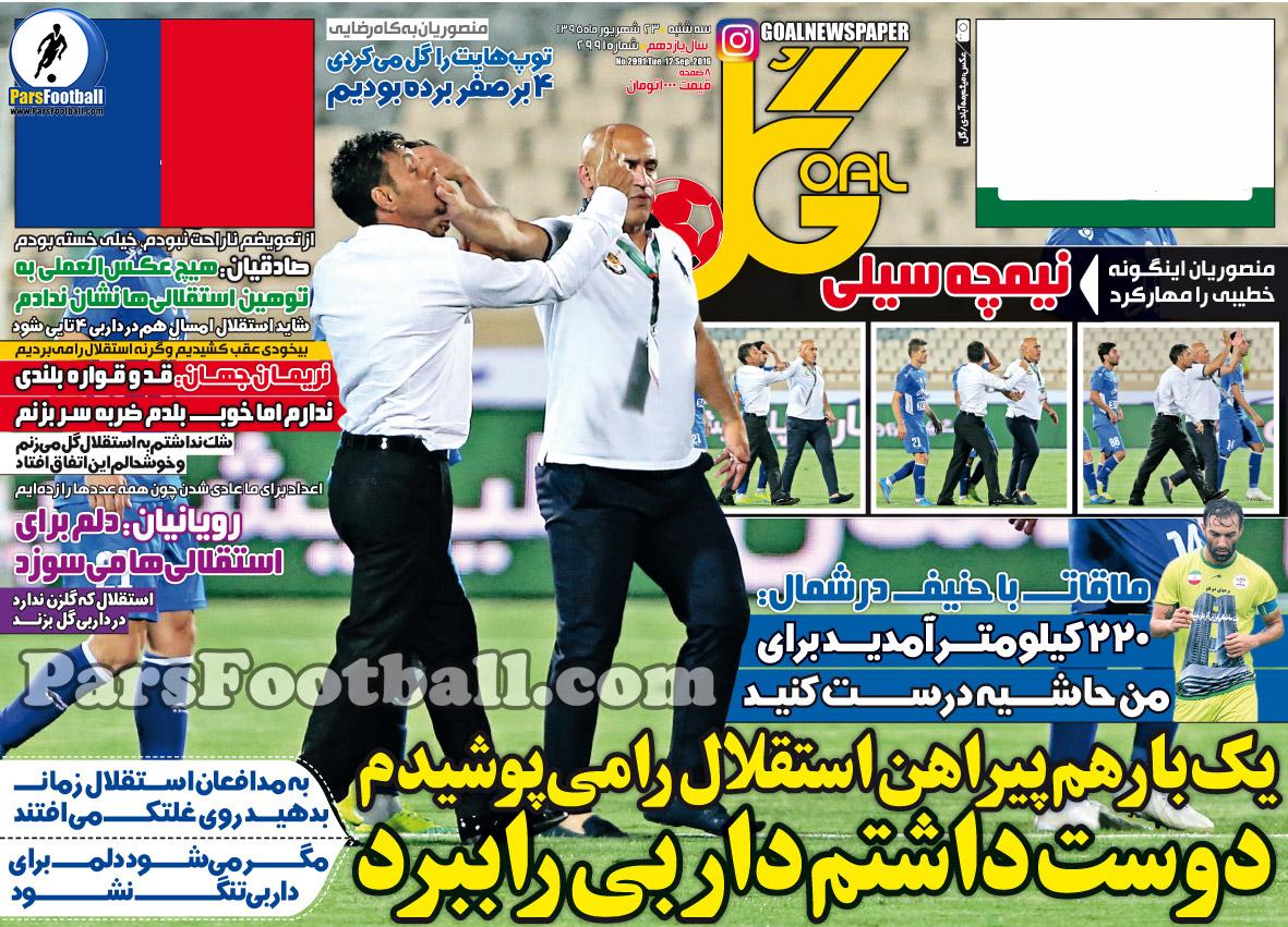 مروری داریم بر عناوین روزنامه گل سه شنبه ۲۳ شهریور ۹۵ | رویانیان: دلم برای استقلالی ها می سوزد | صادقیان: هیچ عکس العملی به توهین استقلالی ها نشان ندادم.