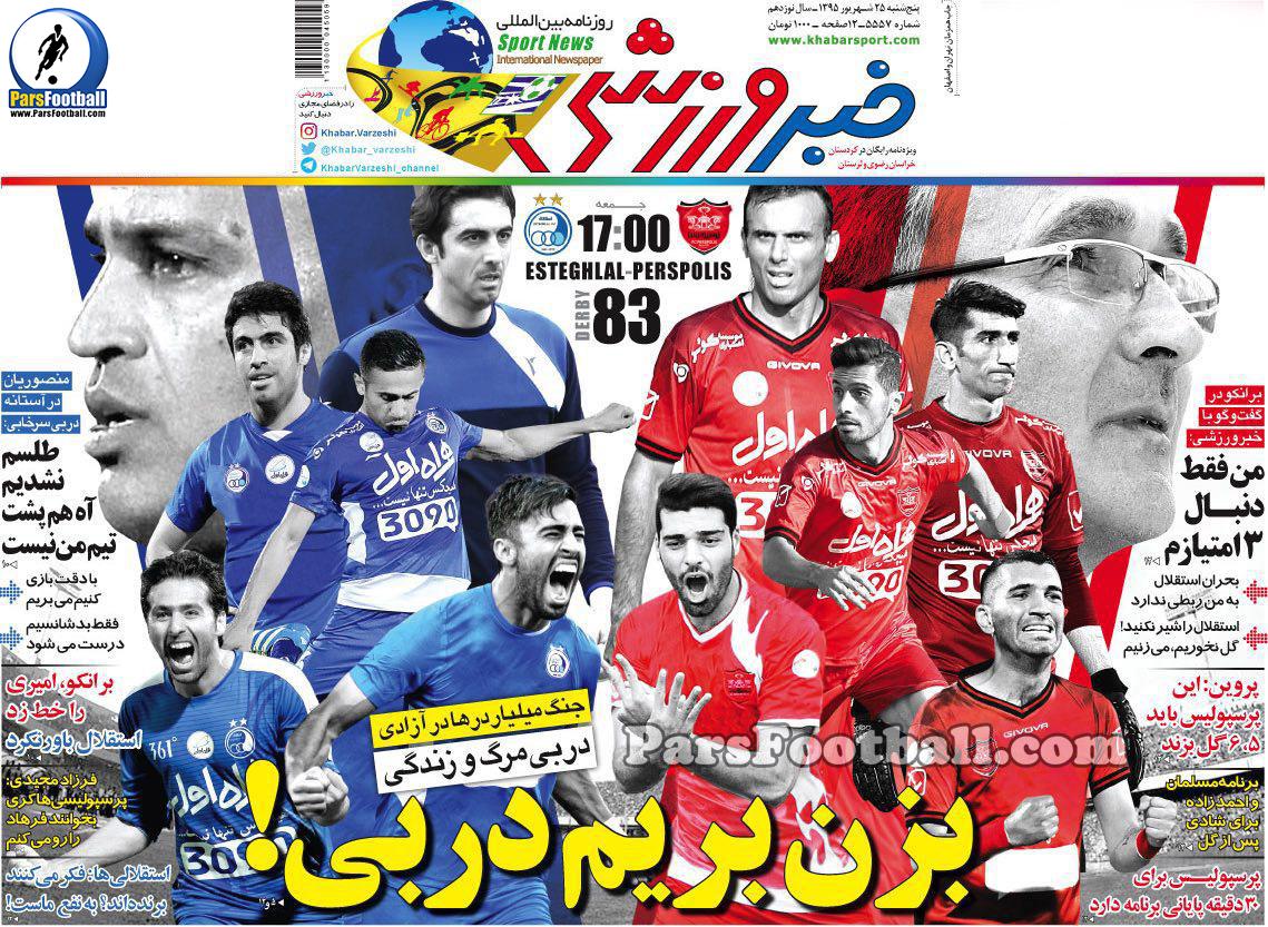 روزنامه خبر ورزشی پنجشنبه ۲۵ شهریور ۹۵ | من فقط دنبال ۳ امتیازم