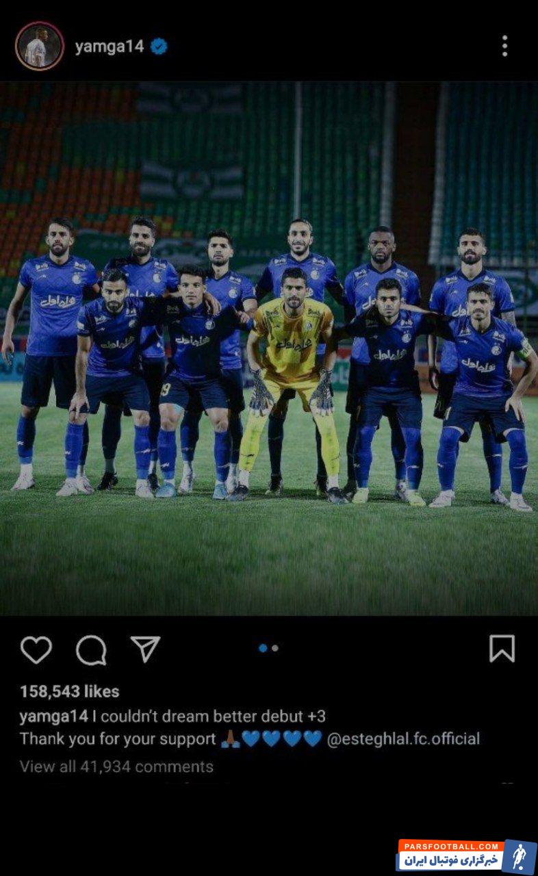 یامگا پس از بازی خطاب به طرفداران استقلال در پستی اینستاگرامش نوشت: