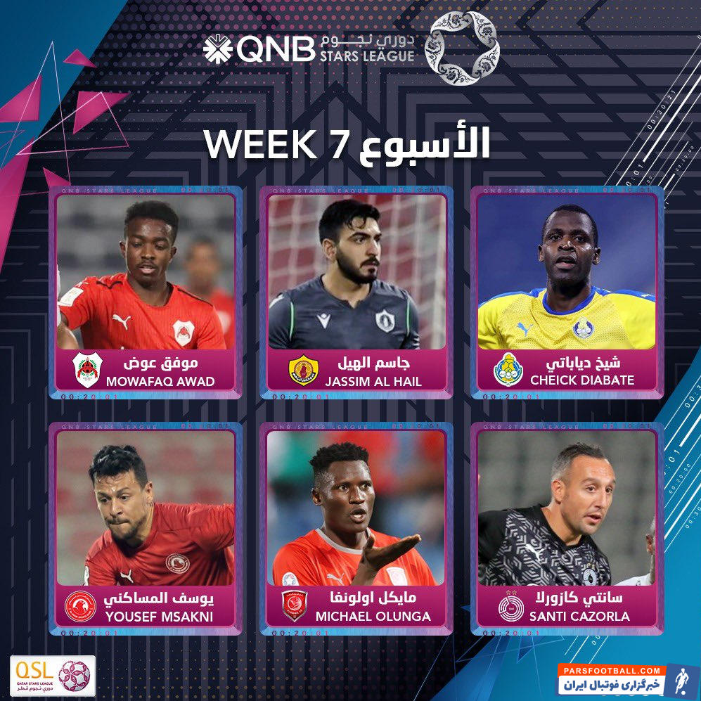 سازمان لیگ ستارگان قطر با اتمام مسابقات هفته هفتم لیگ فوتبال این کشور به معرفی ۶ نامزد کسب عنوان بهترین بازیکن هفته را پرداخت.