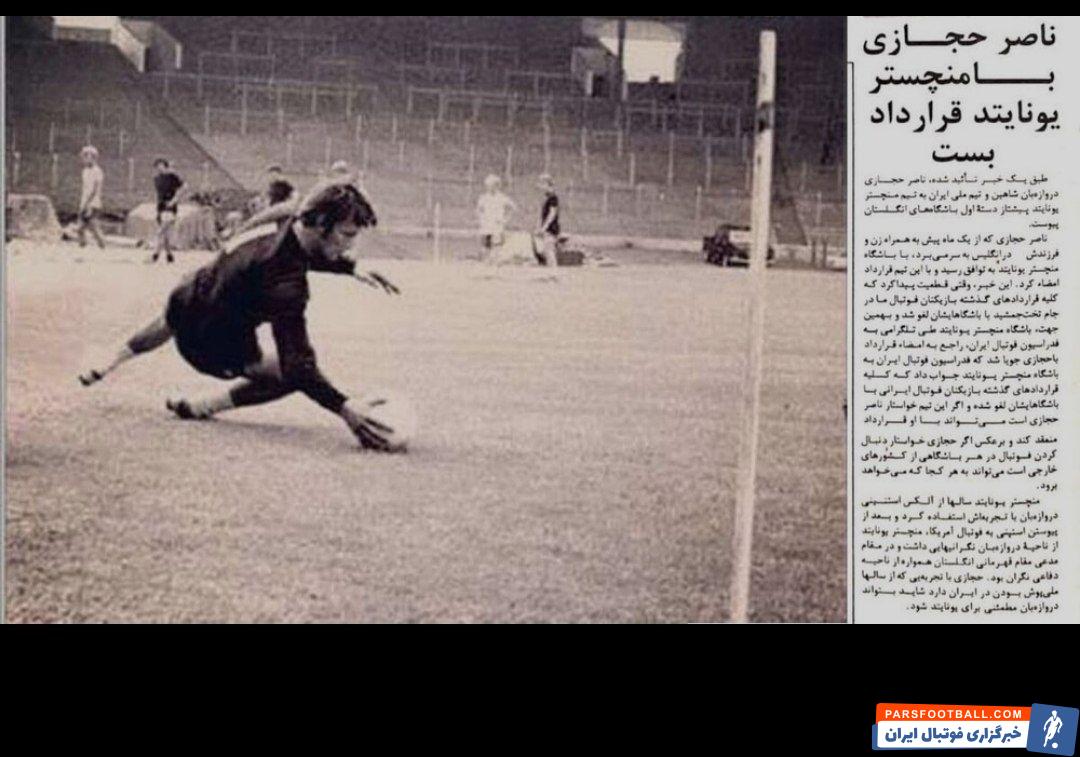 ناصر حجازی دروازهبان ماندگار ایران و باشگاه استقلال در سال ۱۳۵۸ در تمرینات تیم منچستریونایتد شرکت کرده بود.