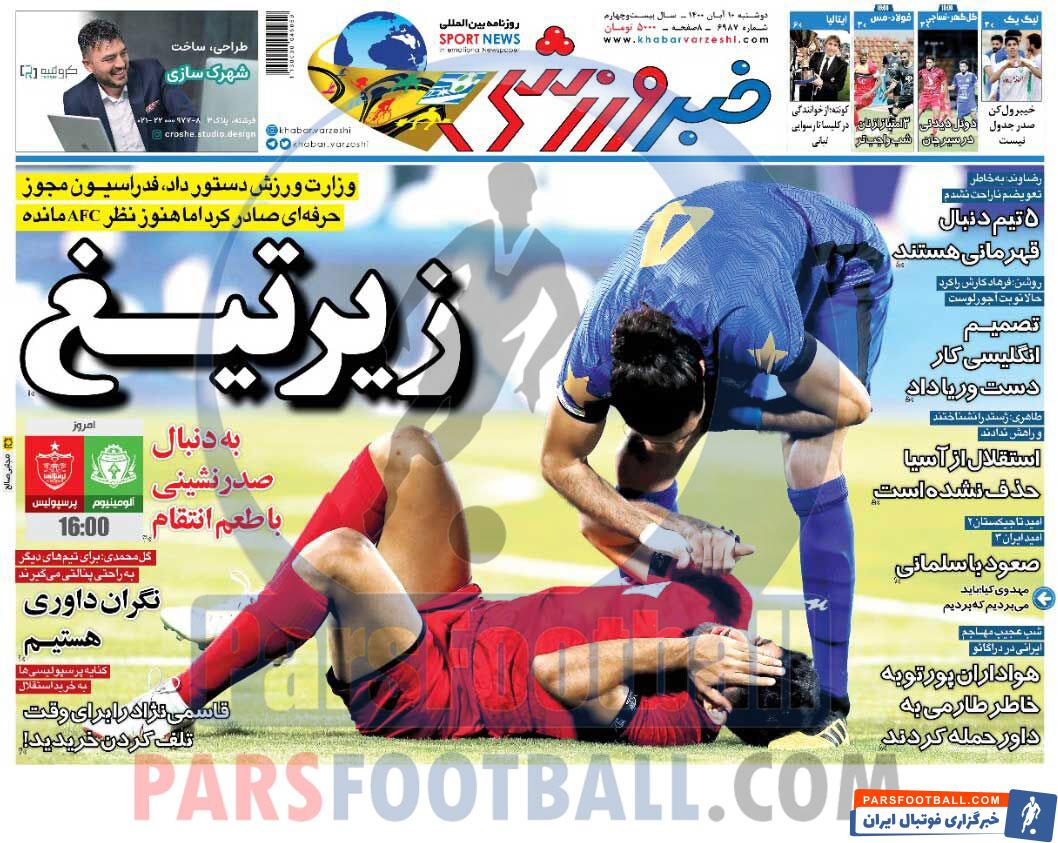 عناوین روزنامه خبر ورزشی دوشنبه ۱۰ آبان ماه به شرح زیر است :
