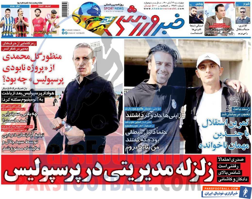 مرور عناوین مهم روزنامه خبر ورزشی چهارشنبه 12 آبان ماه 1400