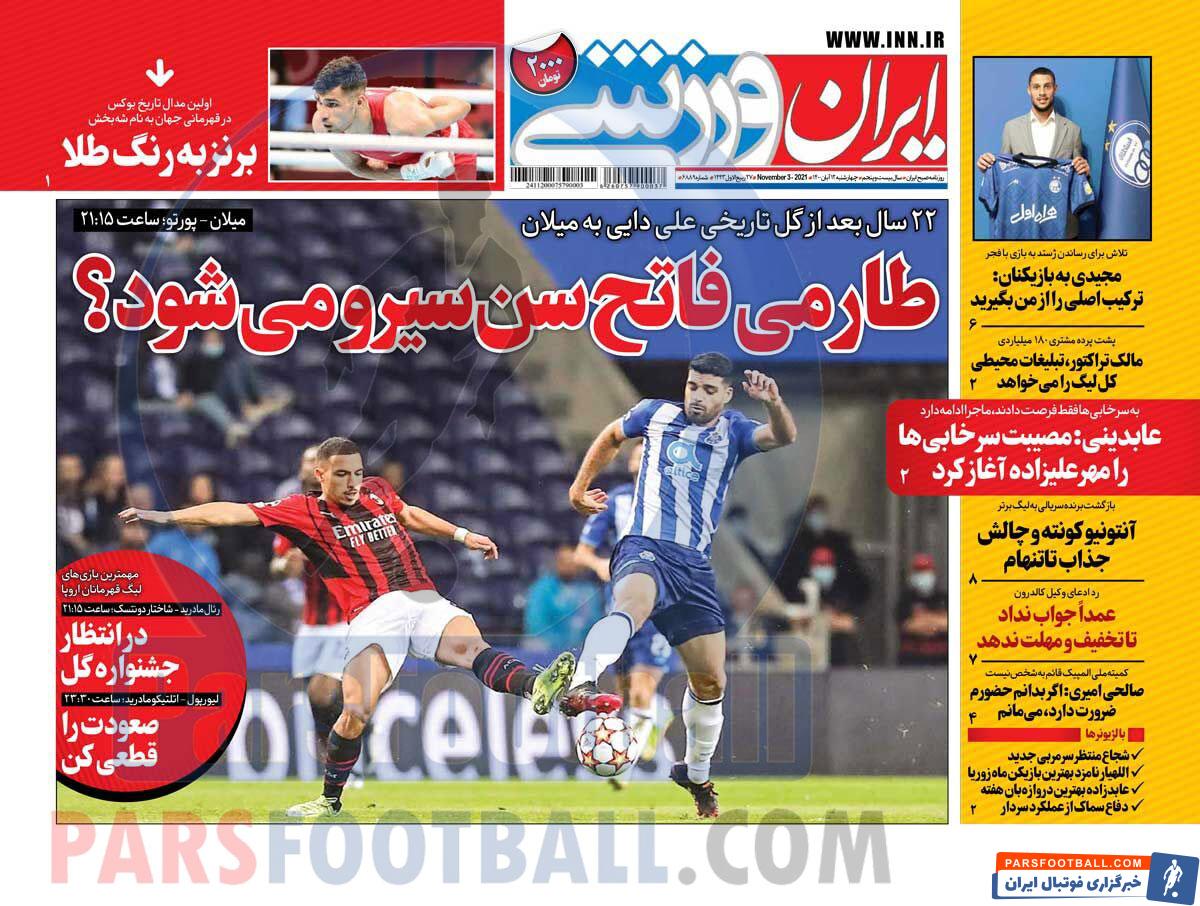 مرور عناوین مهم روزنامه ایران ورزشی چهارشنبه 12 آبان ماه 1400