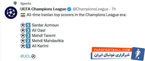 سردار آزمون فاصله خود را با علی دایی در لیگ قهرمانان اروپا زیاد کرد