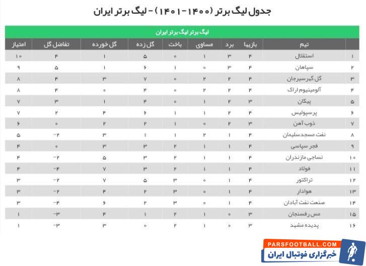 پس از تساوی پرسپولیس و گل گهر ؛ استقلال همچنان صدرنشین لیگ برتر در پایان هفته چهارم لیگ ۲۱
